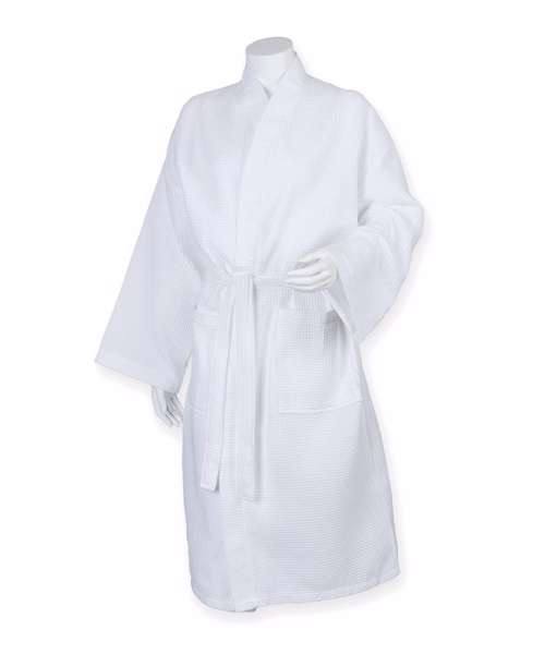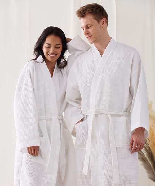 Perfect for relaxing in style, the waffle robe is supersoft in traditional styling with a textured waffle finish and deep patch pockets. Featuring kimono sleeves styling with matching tie belt.