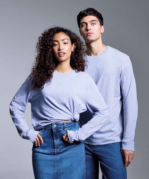 Solid colours are 100% organic cotton. Marl colours 60% cotton and 40% recycled polyester. 32's cotton count. Retail fashion fit. Soft-feel finish. Ribbed crew neck. Twin-needling detailing on shoulders and around back of neck. Cut and sew one by one ribbed cuff. Grown-on hem with twin-needle stitch. Mitred vent to both sides of t-shirt. Self-coloured neck size label.